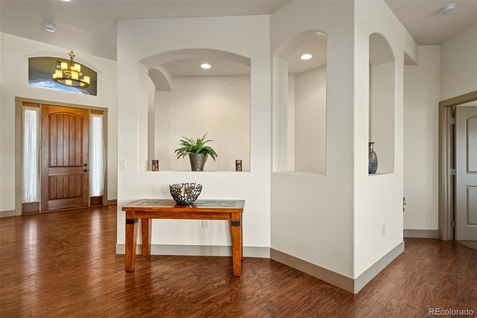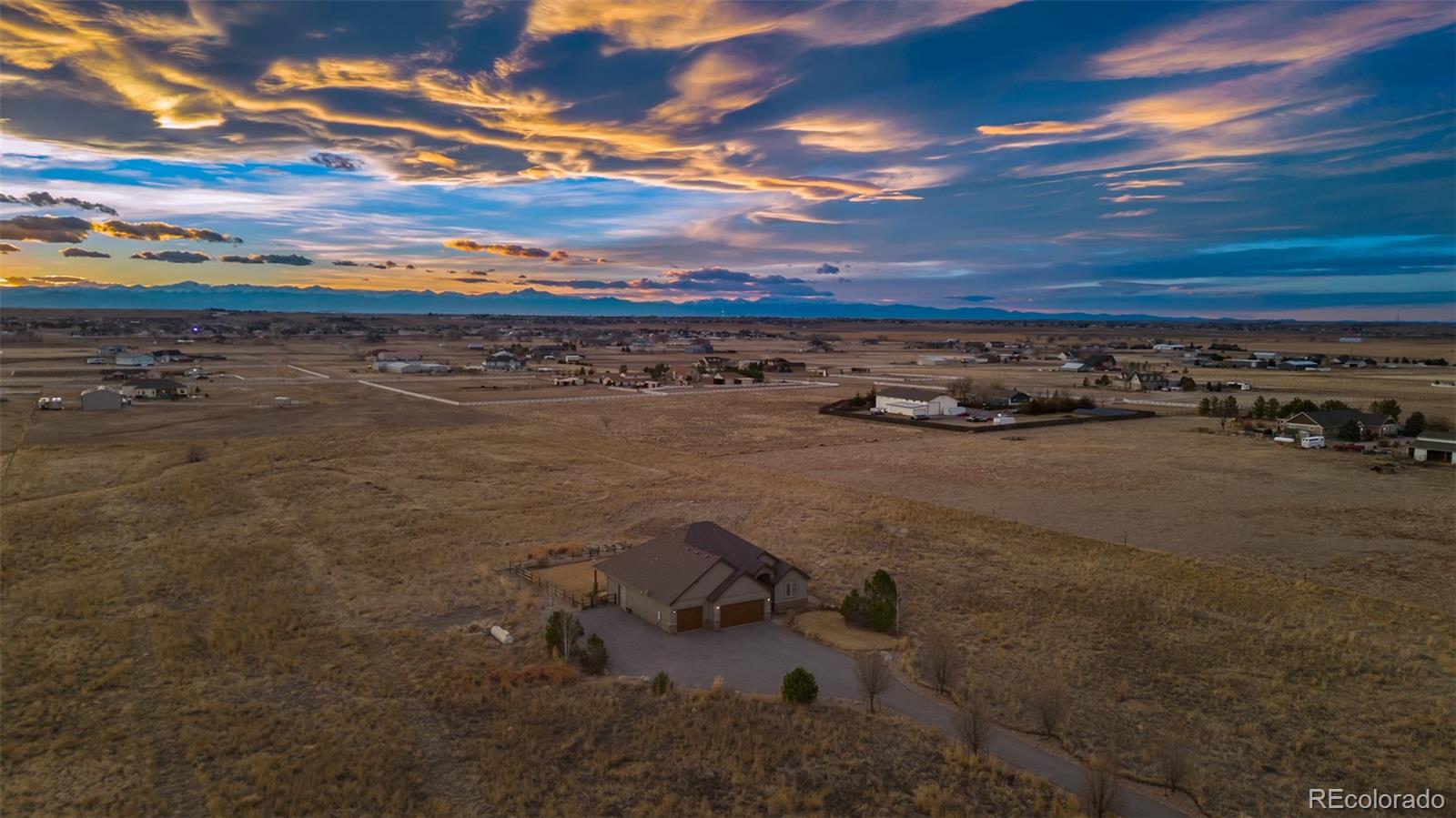 Experience this semi-custom, 1 story home 3,568 total square foot home has nearly 10 acres, NO HOA, wide panoramic Rocky Mountain views, and space for horses, RVs, and outdoor living located in the Heritage Heights acreage home community. Find your freedom with room to spread out while staying connected to north Metro Denver amenities. This 4 bedroom, 3 bathroom acreage home blends custom craftsmanship with Colorado lifestyle living. Inside, the home features travertine floors in the kitchen, laundry room, wet bar, and bathrooms, travertine countertops and sinks, and semi-custom KraftMaid cabinetry with soft close drawers and sliding shelving. The primary suite is a relaxing retreat with heated bathroom floors and dual shower heads. The lower level showcases a game area, custom live edge walnut bar and corner table and 3/4 bath, creating a standout space for entertaining. Outside, the property delivers the lifestyle many buyers search for when looking for homes with land. Nearly 10 acres of prairie grass land provide privacy and wide open space, with horse properties surrounding the property on three sides. Outdoor living features include two covered patios with Front Range mountain views, stamped concrete patio, built-in gas fire-pit and plumbed gas grill, creating the perfect setting for Colorado sunset viewing. Exceptional functionality with a 4+ car insulated garage with three separate doors and extended paved RV, boat, or trailer parking with electrical hookups, making it ideal for buyers searching for Brighton homes with RV parking, acreage, or hobby ranch potential. Whole-house sprinklers reduce insurance costs. With no HOA, shopping and dining within about 15 minutes, and convenient access to Denver, DIA, and surrounding Front Range communities, this property offers a rare opportunity to own a Brighton Colorado acreage home with mountain views, land, and custom finishes. Schedule your private showing today!